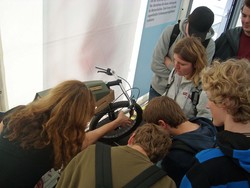 Hersa Keggenhoff, Sabrina Meier, Christopher Ness und ihre Kommilitonen entwarfen einen Messeauftritt und zeigten zahllosen interessierten Schulklassen ihre Exponate. Sie erklärten die Möglichkeiten des Studiums im neuen Bachelor- und Master-Programm und wurden immer wieder mit der Frage konfrontiert: „Wann geht es wieder los mit dem Akkuschrauberrennen?“